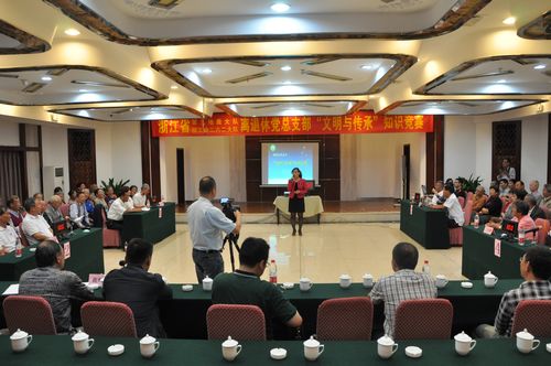 9月25日,文化周知识竞赛在德诚宾馆多功能厅举行,这场题为“传承与文明”的知识竞赛,内容涵盖党的十八大精神、队史队情、行为规范、法律法规、生活保健常识等等多方面内容,旨在提高广大老同志对大队光辉历史和大队现状的了解,增强大家对大队的认同感和自豪感,加强职工队伍的凝聚力和向心力。离退休四个支部各自选派3名选手参加比赛,比赛还设立每个队20人的后援团。比赛选手虽然年事已高,年纪最大的已经82岁高龄了,但比赛的认真劲头一点都不输给年轻人,回答问题个个神采奕奕、思路清晰、干脆利落,各队比赛分数竞争非常激烈,最后,离退休第四党支部参赛队通过一道40分值风险题的完美回答,取得了第一名。