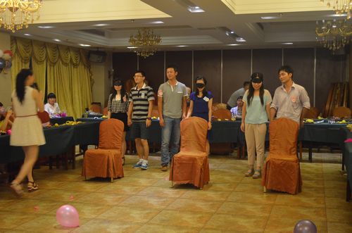 当晚,女生们戴着假面光鲜靓丽,男生们精心装扮英俊潇洒,晚会首先进行的是游戏“传球揭面”,气球随着音乐传递停止,男生圆满完成女生要求的任务后,女生们纷纷摘下了面具露出美丽的容颜,男生们终于可以一饱眼福看到美女的真面目。紧接着的是男女组队游戏环节,一开始大家都显得比较拘谨,但在男生们的主动邀约下,气氛逐渐活跃起来,“寻宝大战”、“蒙眼过河”、“踩气球”等一个个妙趣横生的游戏让单身男女渐渐消除了隔阂,同时也拉近了他们心的距离。晚会持续了整整两个半小时,现场气氛浪漫热烈,欢声笑语从不间断,游戏中穿插的各单位精心准备的歌曲、舞蹈节目更是将晚会推向了高潮,一次难忘的“约会”在男女牵手完成的游戏活动中圆满结束,许多单身青年已经在晚会中找到了自己心仪的异性。