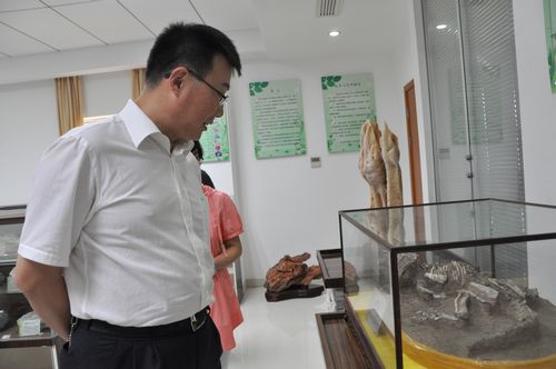 (省地勘局党委书记、局长林天宁视察我队地质标本陈列室)