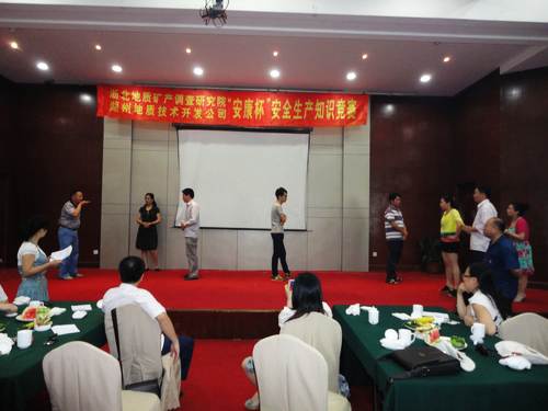 在演讲活动结束之后进入了下一个主题“安康杯”安全生产知识竞赛活动。本项活动分为安全教育演讲、安全知识抢答和趣味游戏三个环节。首先由地调院方园为大家带来了以“安全责任,重在落实”为主题的演讲,她声情并茂的演讲让在座的全体职工深受启示,受到了深刻的教育,让大家更加认识到安全的重要性,赢得了热烈的掌声。紧接其后的是激动人心的抢答环节,通过个人举手抢答的方式,每位答对的选手都可以获得一份奖品。选手们个个做好了充足的准备,争先恐后的抢答,全场气氛异常热烈。最后的趣味游戏“你来比划 我来猜”更是将整个活动推向了高潮,选手们形象而生动的比划使整个赛场充满了欢声笑语。